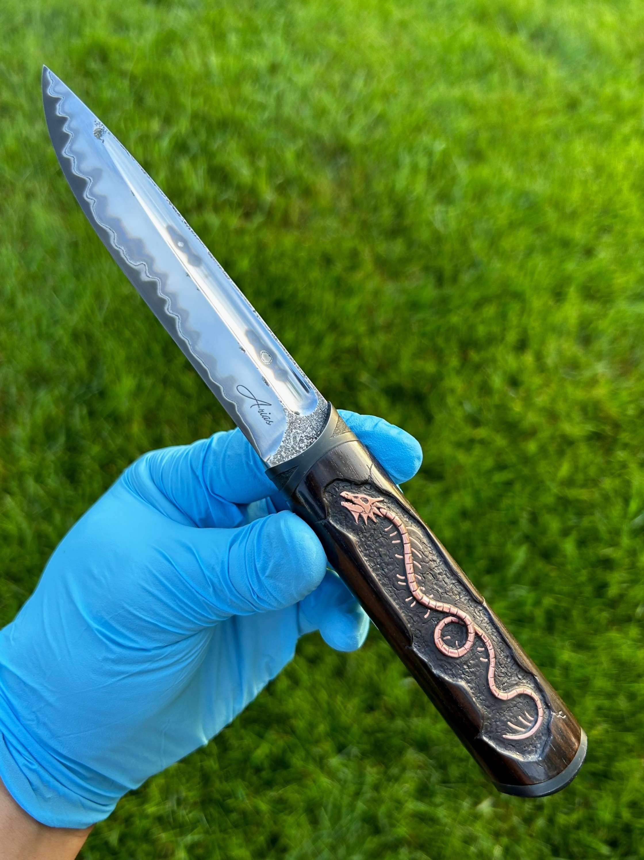 Here at Bridger Forge, I am dedicated to providing you with top-quality blades that you can depend on. I make custom, hand-forged knives, swords, and cutlery. I use the highest quality materials, including in-house stabilized woods, military-grade synthetics, and high-carbon steels to make completely functional works of art. I forge my own signature pattern-welded steel and San Mai blades here in Ceresco, Nebraska. I take pride in heat-treating all of my blades in-house to rigorously proven standards and testing each blade myself to ensure performance. This allows the blades to exceed the abilities of a store-bought knife.