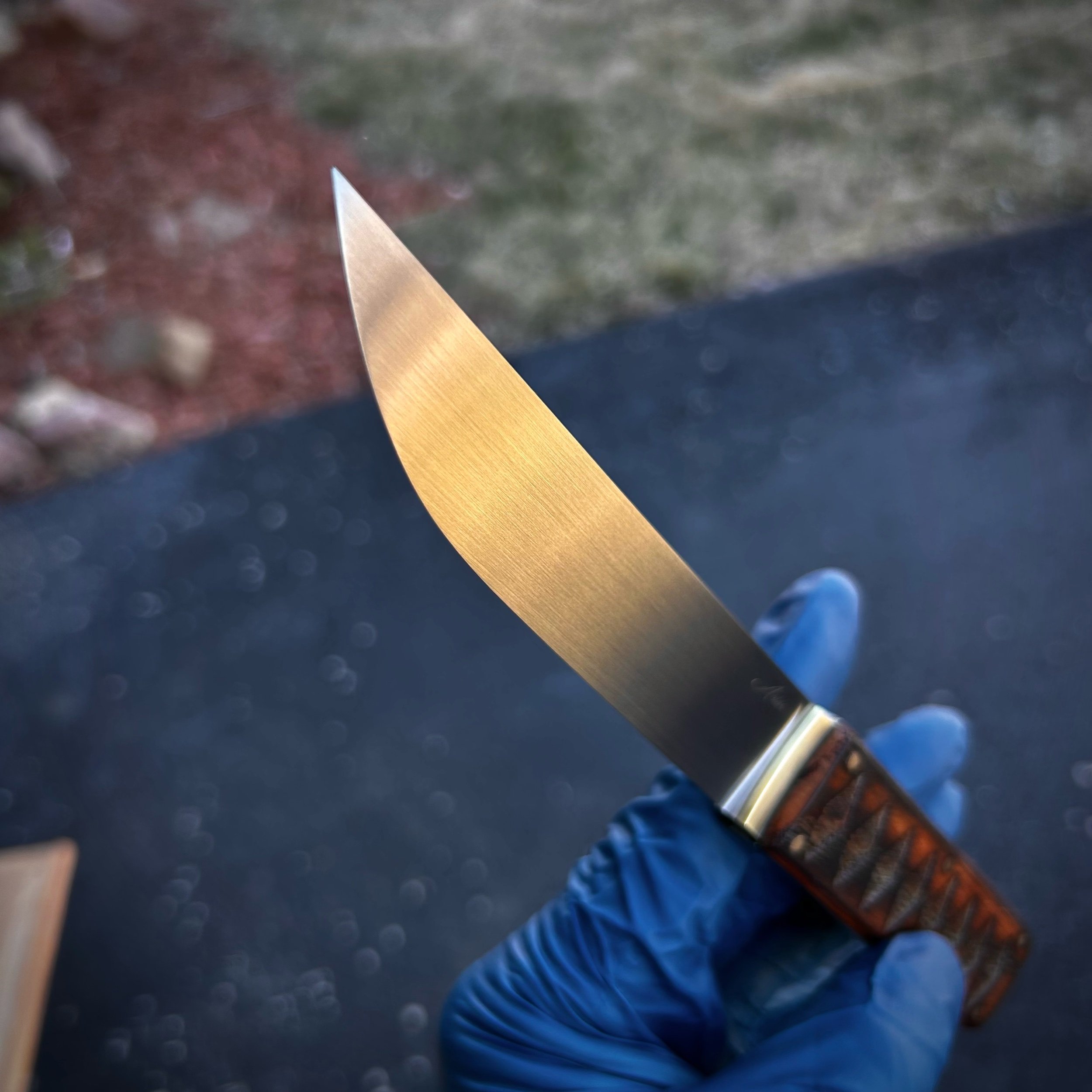 Steel: Hand-sanded satin 52100 steel @61.5 HRC